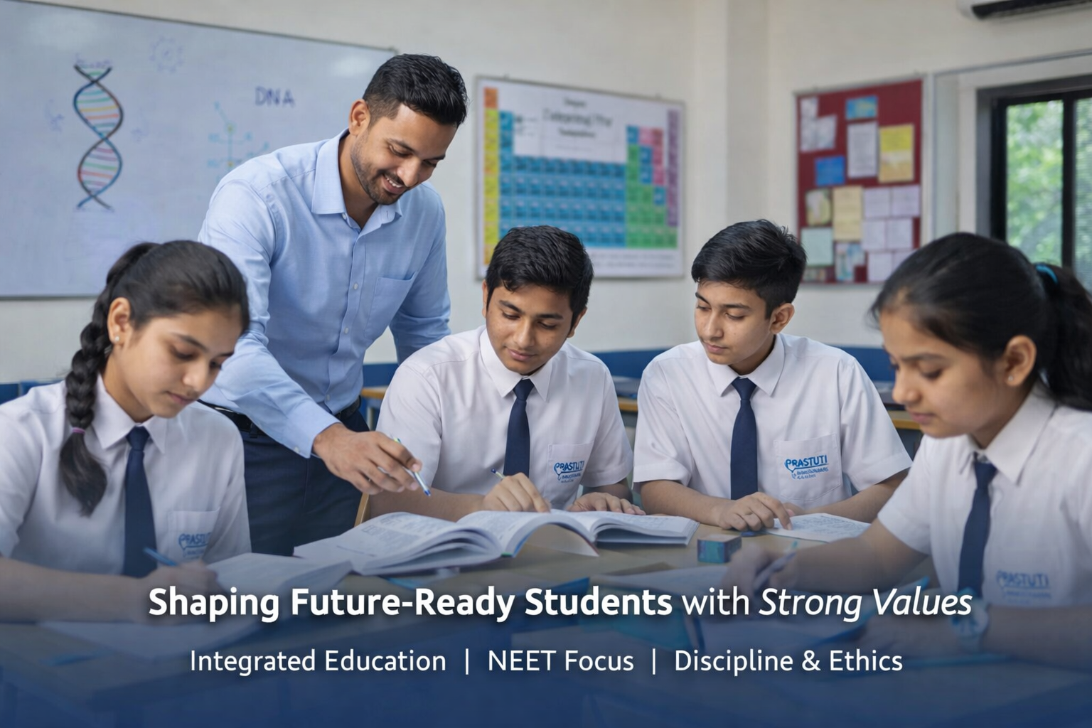 At Prastuti Integrated Academy, our mission is to provide quality integrated education that builds strong academic foundations while preparing students for competitive examinations like NEET. We aim to nurture disciplined, confident, and socially responsible learners through expert guidance, modern teaching methods, and a supportive learning environment.